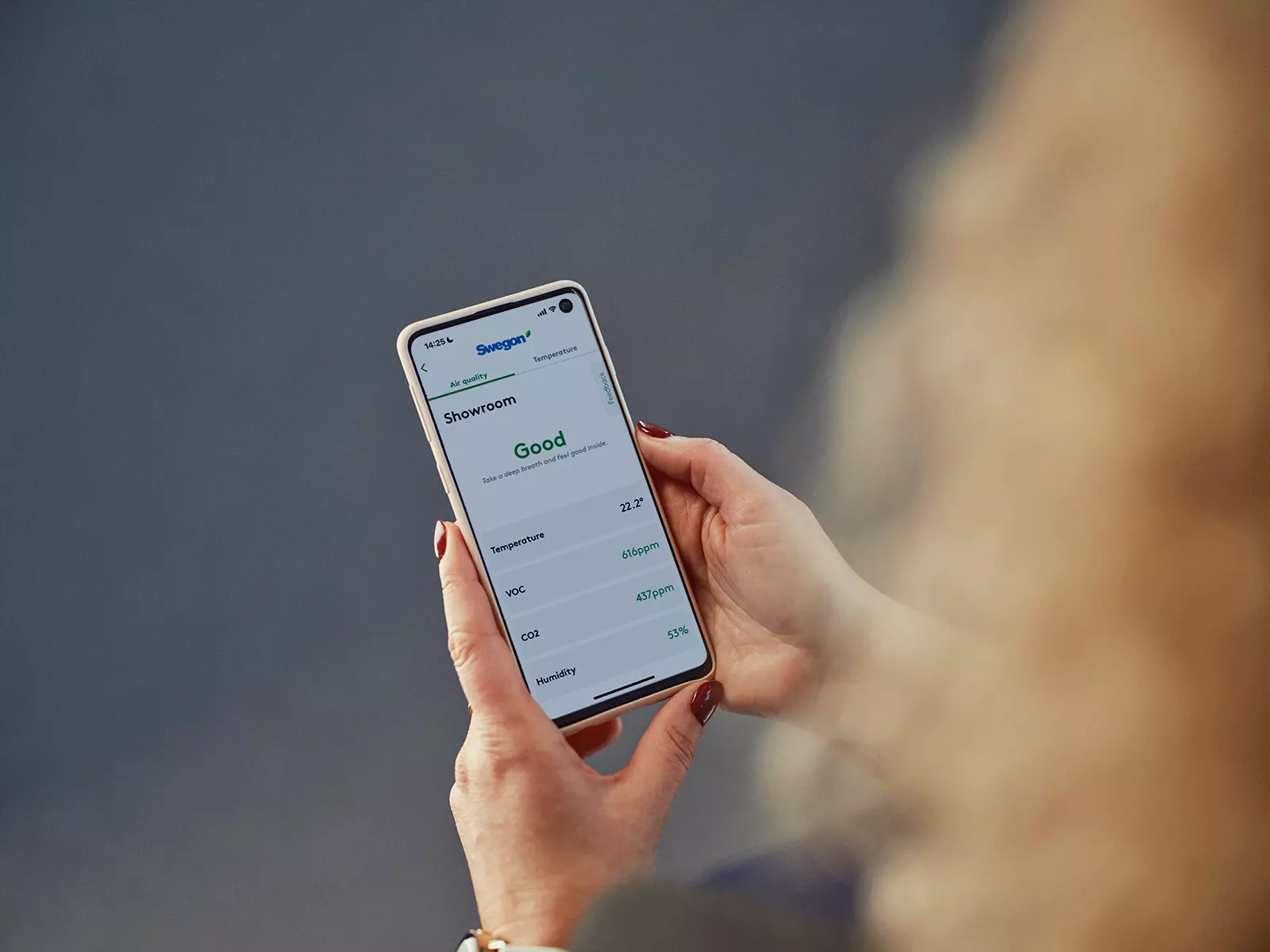 Swegon INSIDE can visualise the indoor climate through a couple of its services, such as INSIDE Visualiser and INSIDE App. These services present relevant values such as temperatures and air quality in an easily undertandable way using different icons and colors.