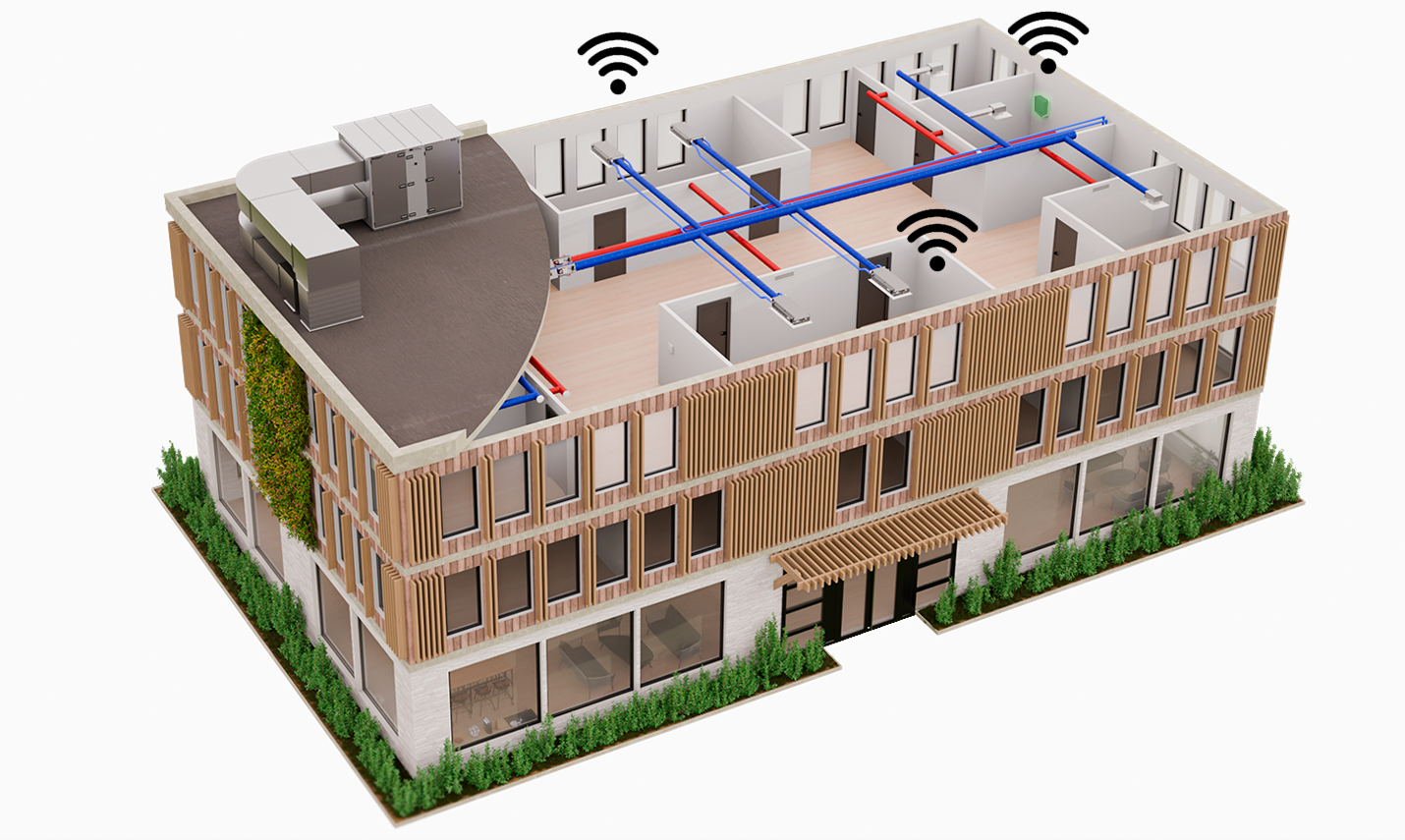 Wireless room components and standardised optimisation functionalities offer unbeatable flexibility and easy repurposing with minimal downtime during renovations.