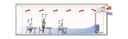 Wenn der Kohlendioxidgehalt in einem Klassenzimmer zu hoch ist, werden die Schüler unruhig und störend. Sie verlieren ihre Konzentration und ihre Lernfähigkeit nimmt deutlich ab. Wenn die Lüftungsrate verdoppelt wird, zeigen Untersuchungen, dass die Leistung der Schüler um etwa 15 % steigen kann.