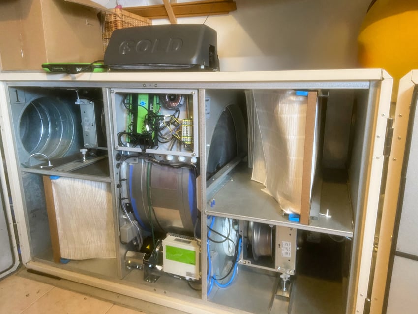 Tag 2: Einbau neuer Ventilatoren und Motoren, Kalibrierung der Sensoren und Neuprogrammierung der Lüftungszentrale zur Effizienzsteigerung. Wir ersetzten außerdem den Radmotor und den Antriebsriemen, um einen reibungslosen und langlebigen Betrieb zu gewährleisten.
