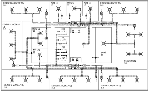 * Um die Anforderungen von Boverket, der schwedischen Behörde für Wohnungswesen, Bauwesen und Raumplanung, für Neubauten (primärer Energiewert 70 kWh/m² Jahr) zu erfüllen, benötigen Konferenzräume einen variablen Durchfluss.