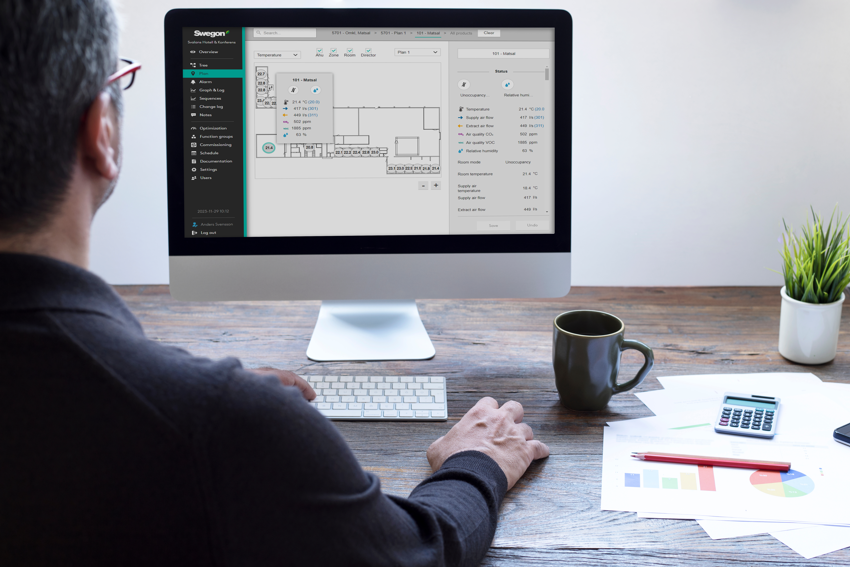 ​Vor der Übergabe an den Kunden wird jedes WISE-System in Betrieb genommen und dokumentiert. Swegons Betriebstechniker nehmen vor Ort die Inbetriebnahme aller von Swegon bereitgestellten Produkte vor und stimmen dies mit den anderen Auftragnehmern aus den Bereichen Lüftung, Elektrik, Sanitär sowie MSR ab.​
