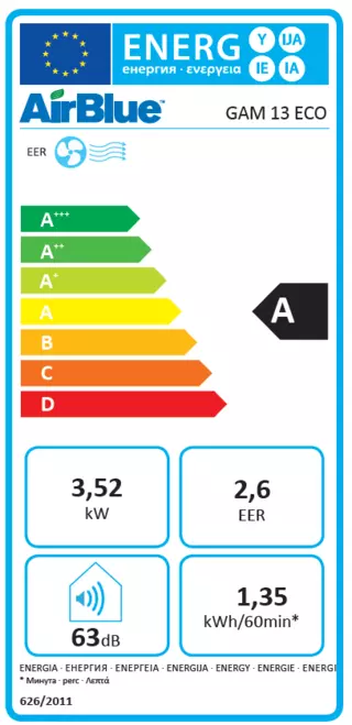 | GAM 13 ECO | 490 | 765 | 425 | 34 | A / - | Kühlen | Mobiles Monoblock Klimagerät | 3,5 / - |
