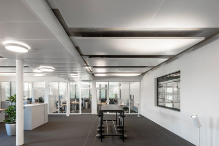 Die Deckenkühlung sorgt für eine angenehme Raumtemperatur und verbessert das Wohlbefinden der Menschen im Raum.