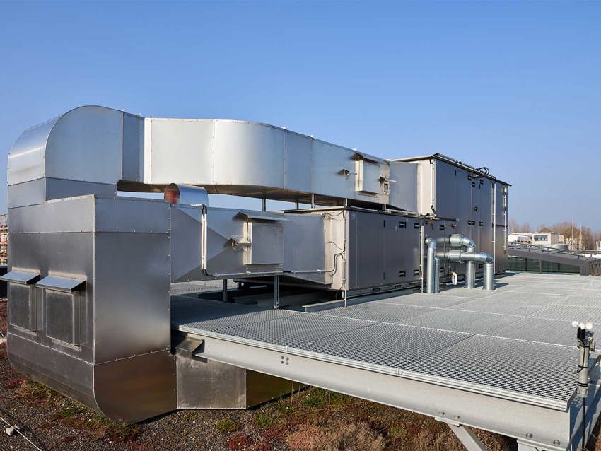 Der Neubau des alphaomega Labors in Leipzig verlangte nach einer besonders hygienischen und komfortablen Klimalösung. Schließlich ist ein Arbeitsschwerpunkt des Labors Hygienediagnostik, zum Beispiel bei Trinkwasserinstallationen. Das Kompaktlüftungsgerät GOLD RX mit Rotationswärmetauscher liefert besonders hygienisch frische Luft, denn eine Spülkammer und die sogenannte Carry-over-Control verhindert eine Vermischung von Zu- und Abluft. Es wurden zwei Geräte auf den Dächern der beiden Gebäude installiert. Hohen Komfort erreicht die Anlage durch zugluftfreie und leise Innenraumgeräte und eine bedarfsgerechte Steuerung der Volumenströme.