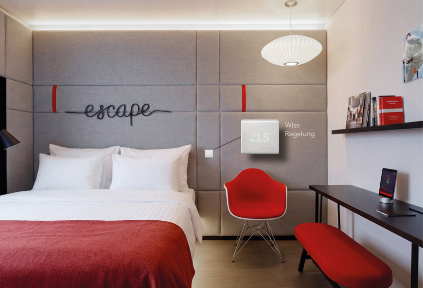 Die Hotelzimmer werden über kompakte Komfortmodule und Reglersysteme klimatisiert und belüftet, die an ein zentrales Lüftungsgerät angeschlossen sind. Durch die Verbindung der Luftvolumenstromsteuerung mit dem Lüftungsgerät wird der Ventilatorbetrieb optimiert und sichergestellt, dass das Raumklima in allen Zimmern gleichmäßig ist.