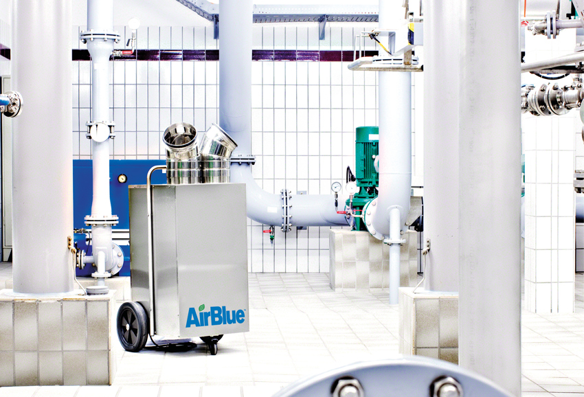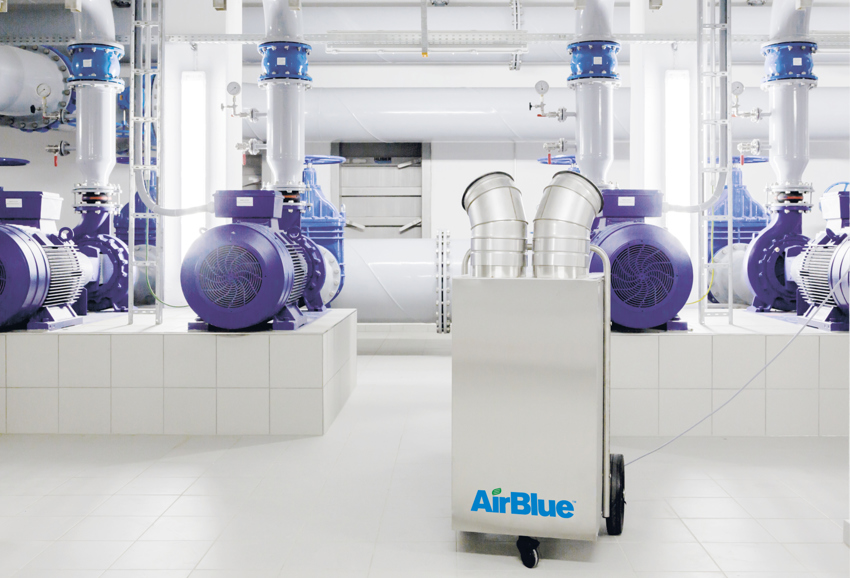 Die mobilen Luftentfeuchter AirBlue mit eingebautem Hygrostat wurden speziell für die Bedingungen in Wasserwerken und industriellen Anlagen entwickelt. Die pulverbeschichteten, kompakten Geräte mit einer Entfeuchtungsleistung von 40 bis 92 l/Tag arbeiten bei typischen Wasserwerkstemperaturen von 8 bis 16 °C und bei hoher Luftfeuchte sehr effizient und halten technische Bereiche zuverlässig trocken. Ein integrierter Betriebsstundenzähler, die Heißgasabtauung, der hochwertige 3M-Luftfilter sowie die versenkt angebrachten Anschlüsse erhöhen die Betriebssicherheit. Die Geräte sind nach Schutzklasse IP54 zertifiziert und erfüllen damit die Anforderungen der Berufsgenossenschaften für feuchte bis nasse Einsatzbereiche.