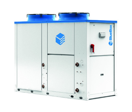 Die Zuluft wird nach dem Adsorptionsprozess zusätzlich sensibel konditioniert. In der Lüftungsanlage ist hierzu ein Direktverdampfungsystem verbaut worden. Mittels eines BlueBox Verflüssigungssatzes Typ ZETA LE SLN 8.2 mit drehzahlgeregelten Verdichtern und Saugdruckregelung wird die in die Eishalle eingebrachte, entfeuchtete Prozessluft abgekühlt.