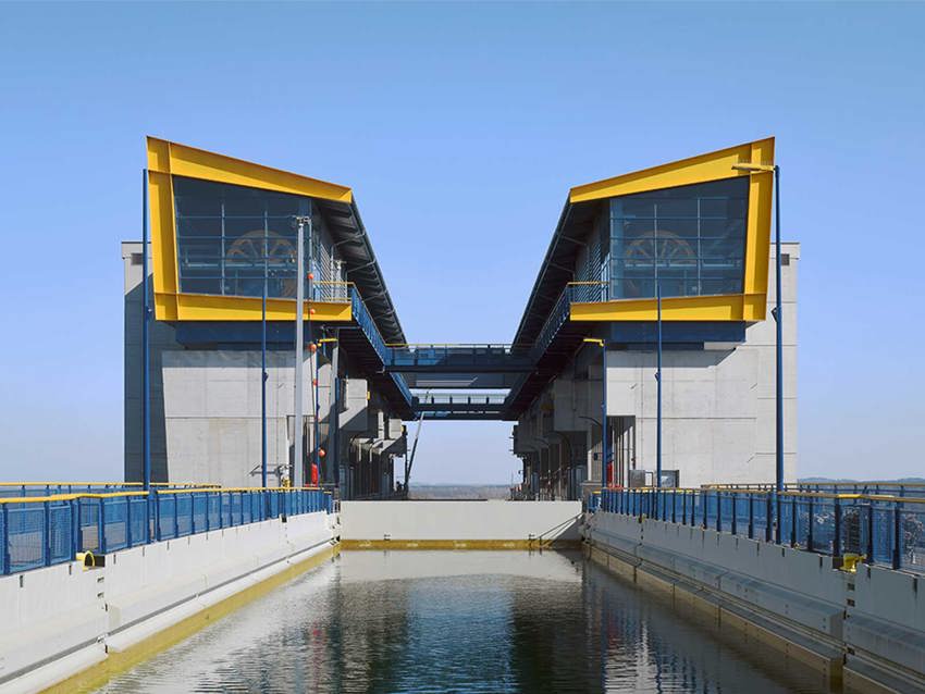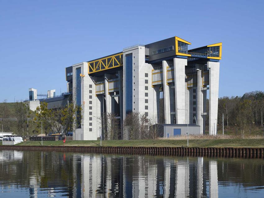 Schiffshebewerke befördern Schiffe in einem gewaltigen Trog über größere Höhenunterschiede. Das Schiffshebewerk Niederfinow ist das Älteste im gesamten Bundesgebiet. Es ist ein offizielles „Historisches Wahrzeichen der Ingenieurbaukunst in Deutschland“. Seit 2017 wird es um einen Neubau im Norden ergänzt, der 2025 alle Aufgaben des historischen Bauwerks übernehmen soll.