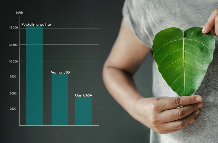 Uuden CASA R5 Geniuksen vanhaa ilmanvaihtokonetta parempi hyötysuhde takaa, että investointi maksaa itsensä takaisin reilusti pienentyneen sähkönkulutuksen, sekä käyttö- ja huoltokulujen myötä.