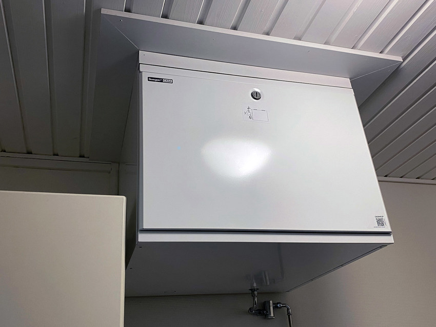 Ilmanvaihtokoneelle oli valmis, tilava paikka valmiina kodinhoitohuoneessa. Aluksi entinen talotuuletin purettiin pois. Sen jälkeen CASA W3 Smart asennettiin kodinhoitohuoneeseen ja samalla asennettiin uusi ilmanvaihdon tulo- ja raitisilmakanavisto, joka mahtui hyvin yläpohjaan. Sen sijaan vanha poistoilmakanavisto pystyttiin suurimmaksi osaksi hyödyntämään.