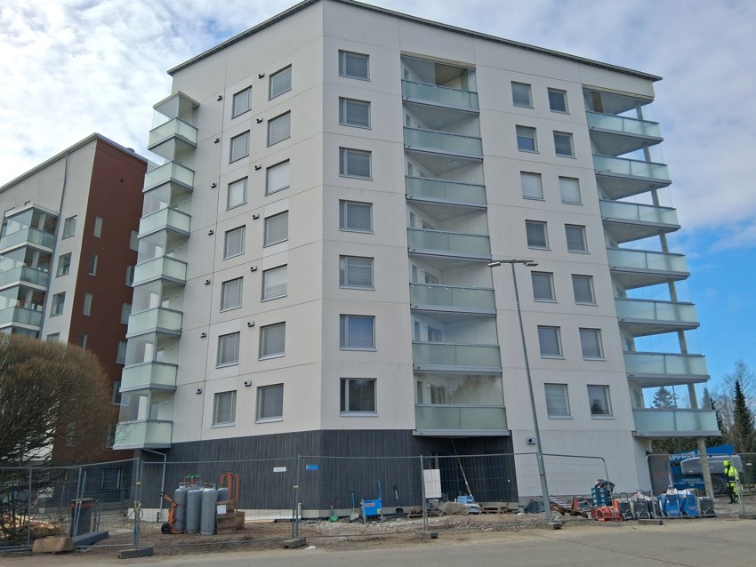 – Parissa kuukaudessa oltiin ylimmän kerroksen katossa, viikko sen jälkeen rakennus oli vedenpitävä. Kun vesikatto oli valmis, hissi oli käytettävissä varsin nopeasti sen jälkeen, mikä helpotti materiaalien siirtoa, Jari Lehtinen kertoo.