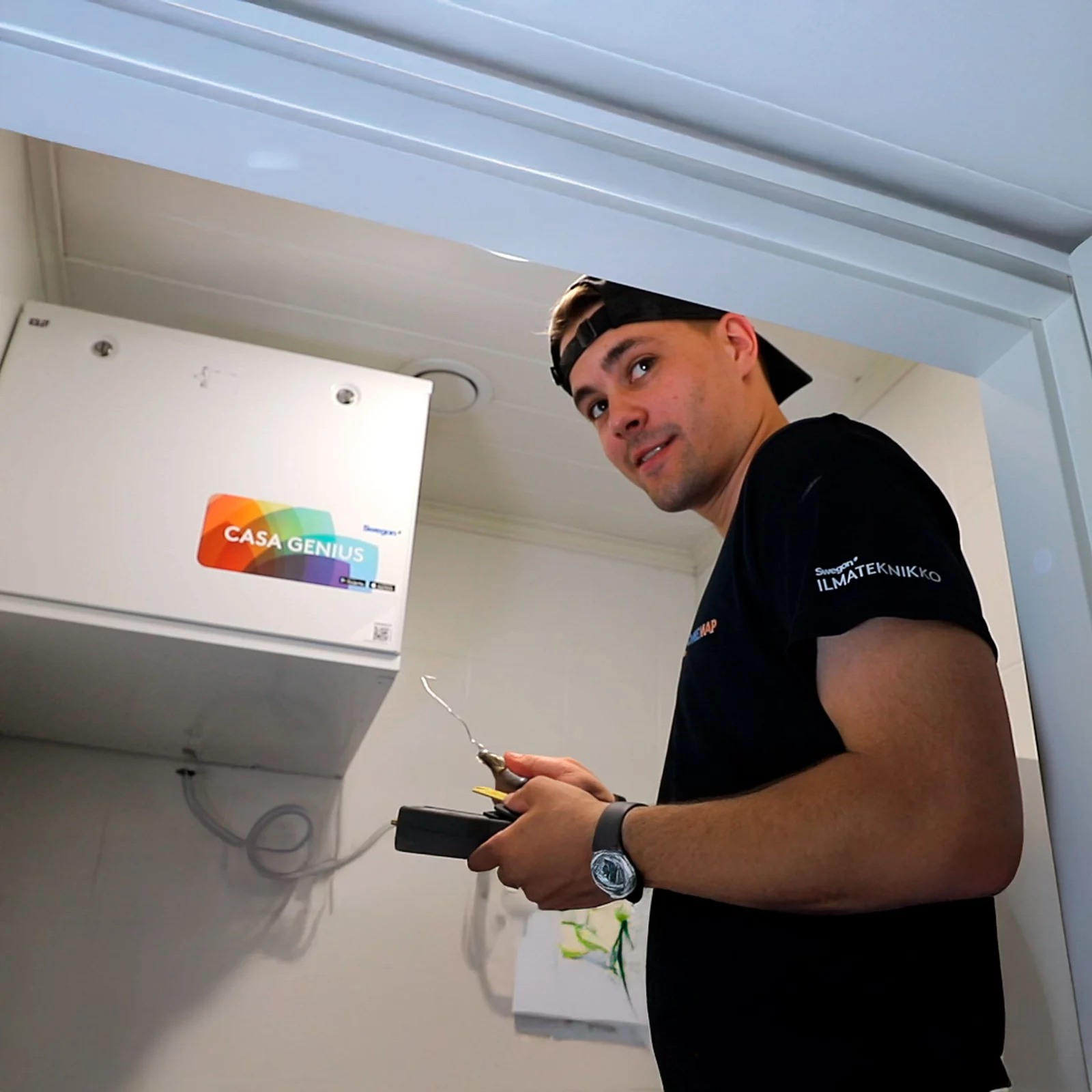 Asennuksesta vastasi Swegonin valtuutettu Ilmateknikko-kumppani HomeMap, joka on erikoistunut Swegonin ilmanvaihtojärjestelmiin.