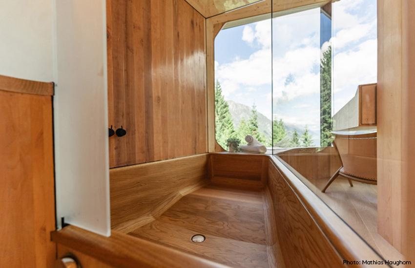Usein ilmanvaihtolaitteet sijoitetaan kodeissa kylpyhuoneeseen tai kodinhoitohuoneeseen. Woodnestissä asennus täytyi toteuttaa eri tavalla, sillä ilmanvaihtolaite ei oikein sovi kylpyhuoneeseen, jossa huomion herättävät ylelliset materiaalivalinnat, kuten käsintehty puinen kylpyamme ja ikkunoista avautuvat kauniit luonnonmaisemat. Näin ollen ilmanvaihtokone päätettiin sijoittaa lattian alle, kartiomaisen tilan pohjalle.