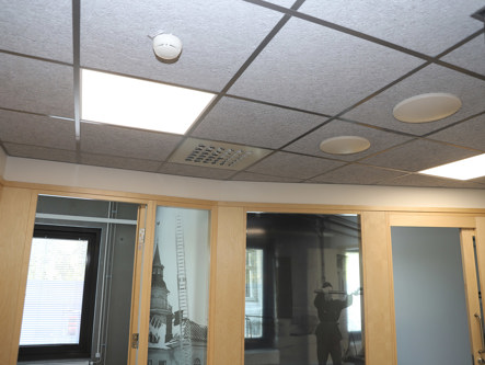 EAGLE Ceiling -tuloilmalaitteita pelastuslaitoksen toimistosiivessä.