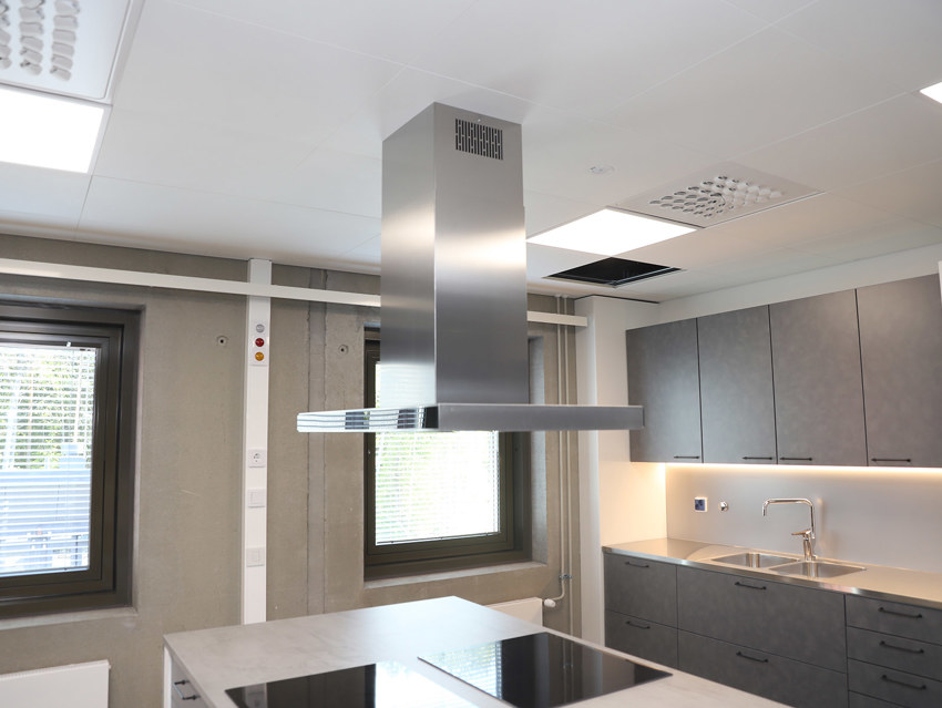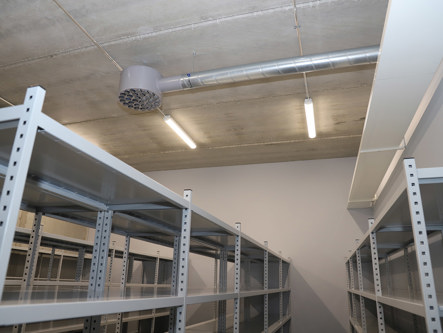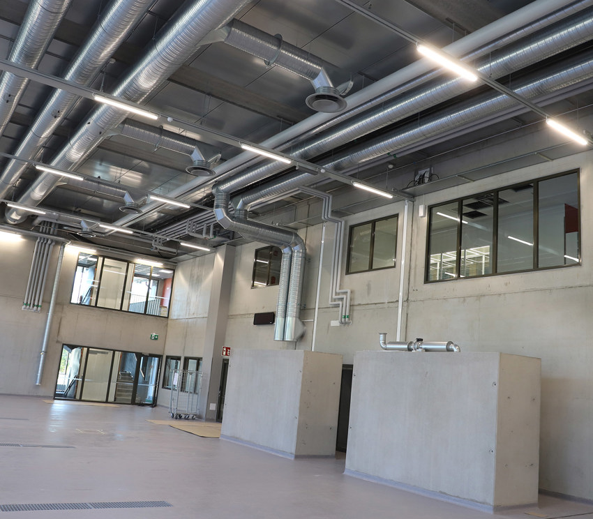 Toimistosiiven tuottavuutta pitävät yllä EAGLE Ceilingit, ja varaston ilmanvaihdon ytimenä ovat pyöreät EAGLE Freet. Lisäksi alakaton asennuksissa on käytetty ADAPTER-sovittimia.