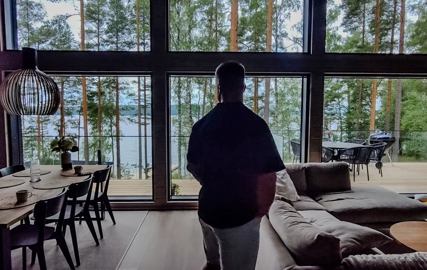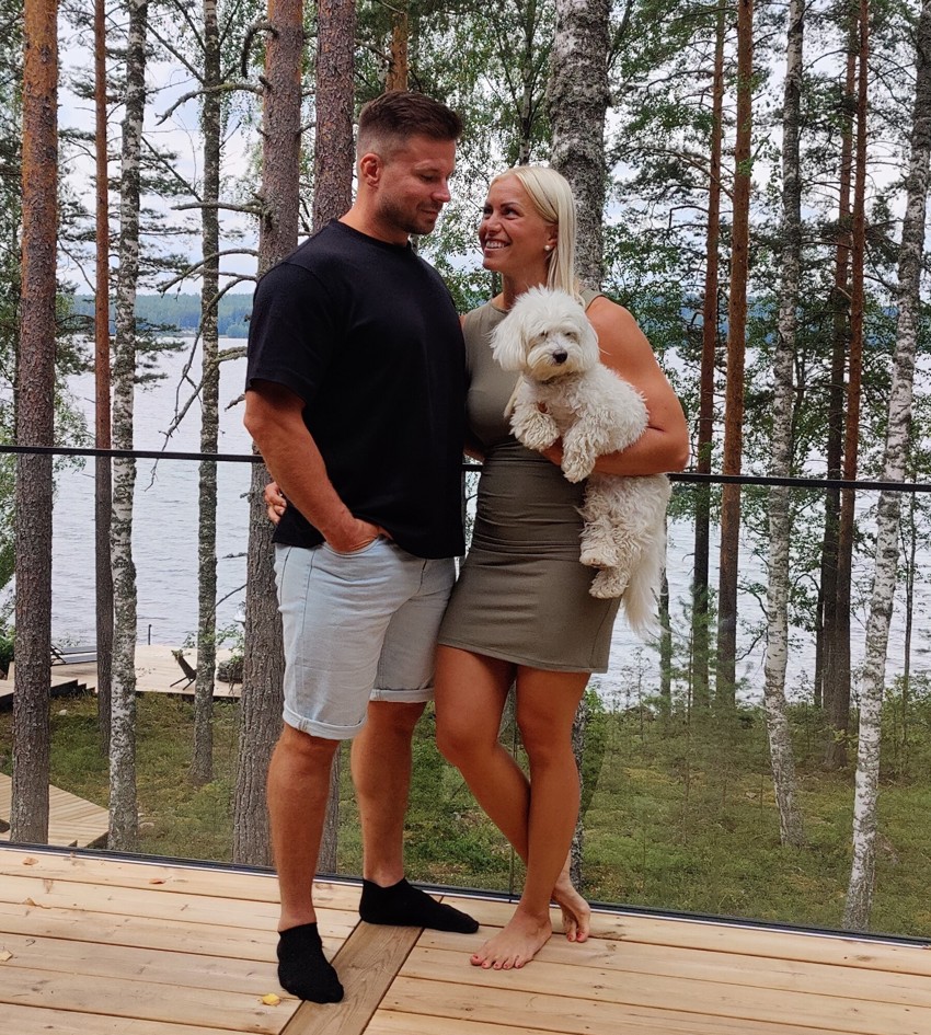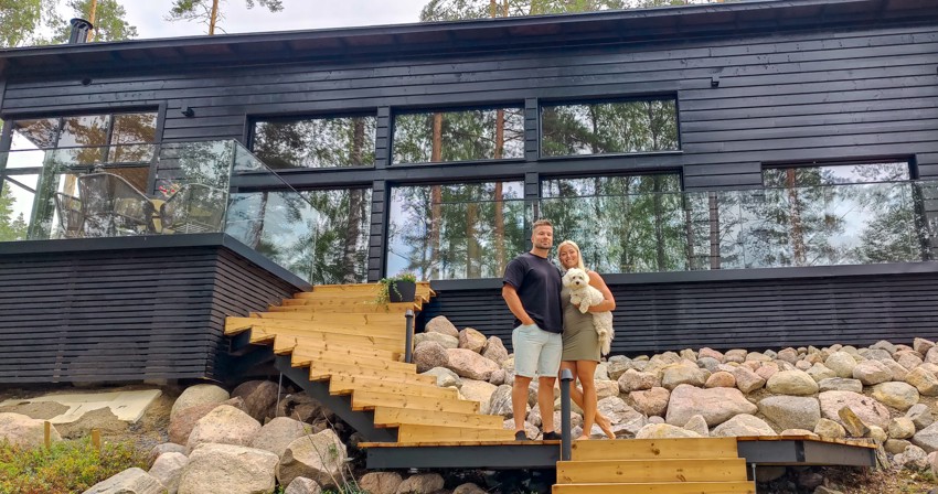 Kymenlaakson upeissa rantamaisemissa komeilee Vertti Harjuniemen ja Pauliina Räisäsen uusi kesähuvila – tai oikeammin kakkosasunto, sillä moderni talo on varustettu kaikilla nykyajan mukavuuksilla viimeisintä talotekniikkaa myöden.