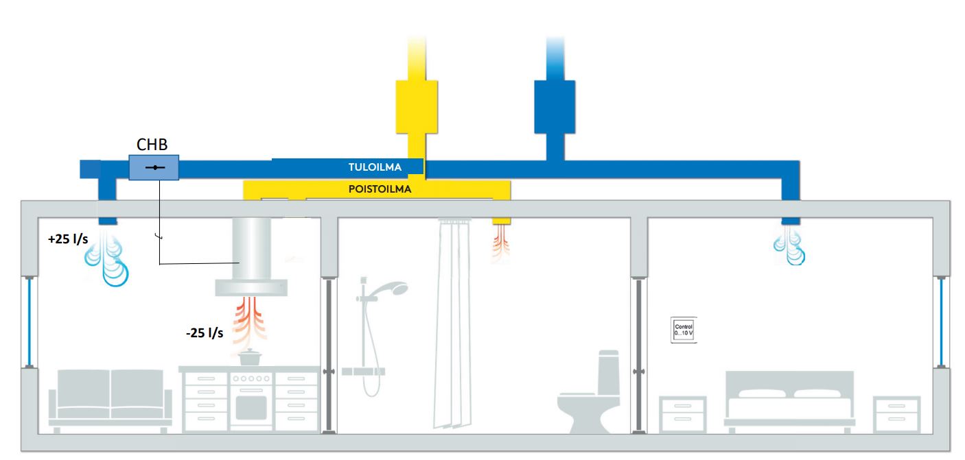 Alipaineongelmien estämiseksi Jätkäsaaren asunnot ovat varustettu Swegonin kehittämällä CHB-balansointiyksiköllä, joka tasapainottaa liesikuvun poistamaa ilmavirtaa ja siten estää liiallisen alipaineen syntymisen huoneistoon. Laitteen säätöpelti avautuu ja sulkeutuu automaattisesti oikeaan asentoon liesikuvun läpän tilatiedon perusteella niin yleispoiston (perusilmavirta) kuin tehostuksenkin aikana.