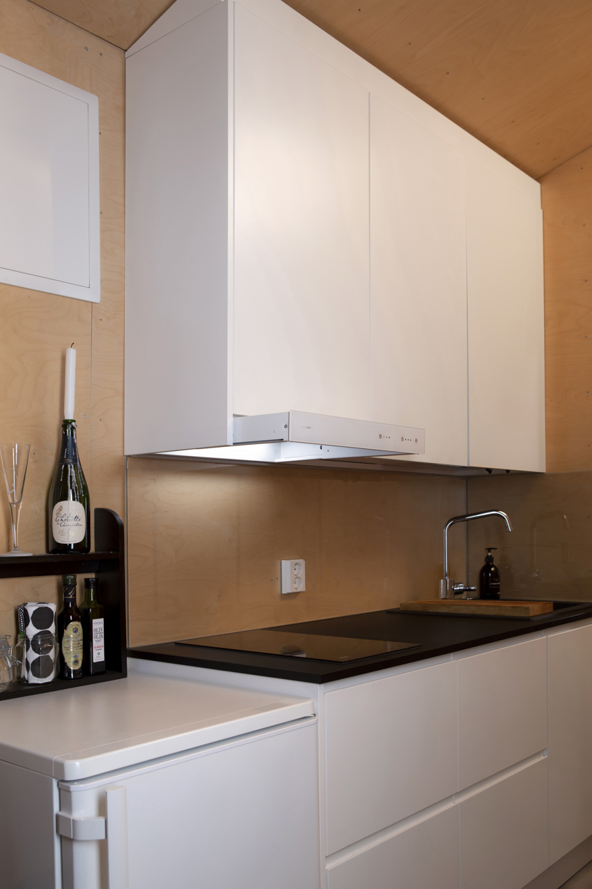 Perheellä on rannassa 20 m2 kokoinen kompakti rantasauna, jossa on pieni pukeutumistila, keittiö, suihkutila ja sauna. Rantasaunan ilmanvaihdosta vastaa sen keittiöön sijoitettu ulosvedettävä CASA Salsa -liesikupu ja siihen yhdistetty poistoilmapuhaltimena toimiva Twist-puhallinyksikkö. Saunarakennuksen poistokanavat on yhdistetty yläkaapin sisälle piilotettuun puhaltimeen, jonka nopeutta on helppo säätää suoraan liesikuvun hipaisupainikkeista.