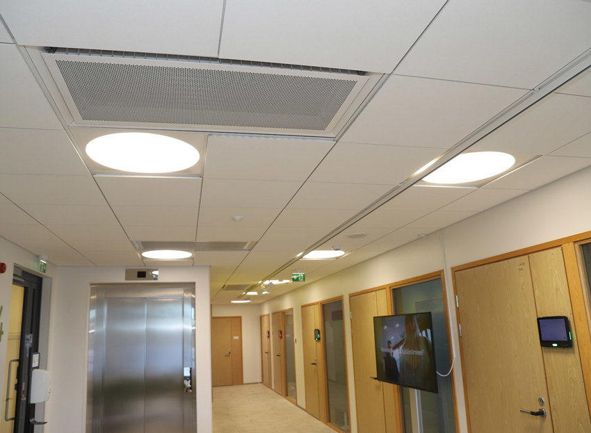 Kiinteistöön on valittu Swegonin erilaisia päätelaitteita ja WISE-olosuhdejärjestelmä, joka mittaa ja kontrolloi ilmanlaatua, kosteutta, VOC-tasoa ja lämmitystä. Seinillä on lämmönsäätöpaneeleja ja Swegon WISE OCS -antureita.