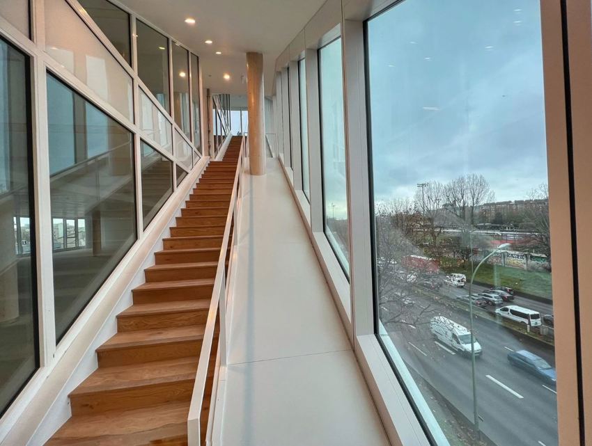 Les axes de circulation se transforment promenades sur la ville et même les escaliers, qui s'éloignent des façades transparentes, offrent des espaces polyvalents, transformant ainsi l'espace de travail en un lieu de vie.
