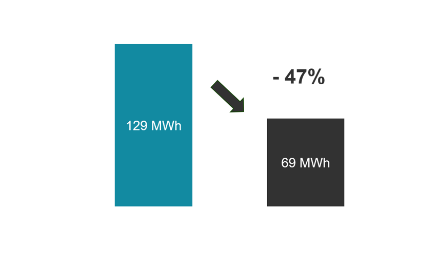 Savings when using ReCOâ‚‚ function: 129 MWh – 69 MWh = 60 MWh or around €9000 (0,15€/kWh)