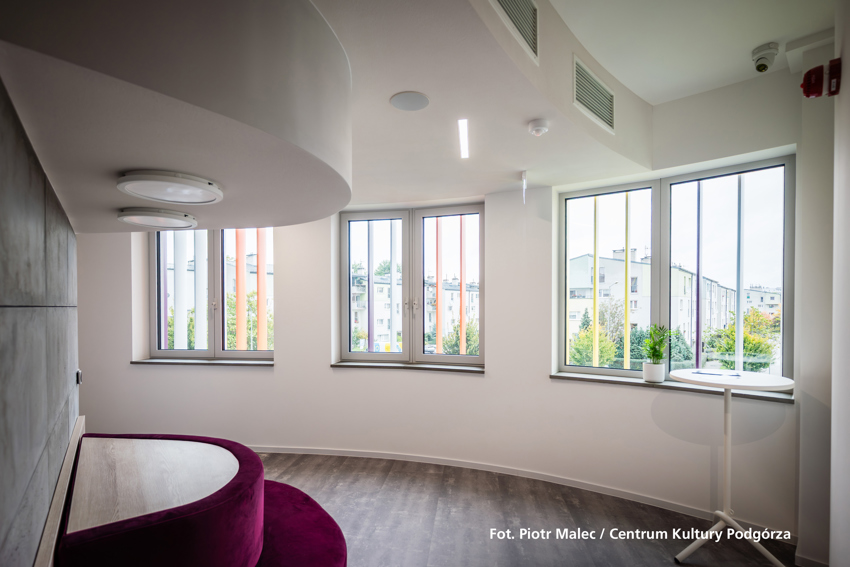 CentralnÄ… część obiektu zajmuje wielofunkcyjna sala widowiskowa z 287 miejscami oraz scenÄ… z przeznaczeniem na koncerty, spektakle teatralne, projekcje filmowe i eventy. Sala jest wyposażona w technologiÄ™ scenicznÄ…: m.in. mechanikÄ™ sceny, profesjonalne oÅ›wietlenie sceny oraz nagÅ‚oÅ›nienie przystosowane do ww. przedsiÄ™wzięć. Na drugim i trzecim piÄ™trze przewidziano pomieszczenia edukacyjne oraz część administracyjnÄ… Centrum. Na część edukacyjnÄ… skÅ‚adajÄ… siÄ™ m.in. pracownia plastyczna i ceramiczna, lektorium do prowadzenia zajęć z jÄ™zyków obcych, dwie pracownie oÅ›wiatowe, cztery sale muzyczne (do nauki gry na instrumentach i zajęć wokalnych), trzy sale taneczne, w których odbywajÄ… siÄ™ m.in. zajÄ™cia baletowe, z taÅ„ca nowoczesnego czy latino oraz sala spotkaÅ„ klubowych.