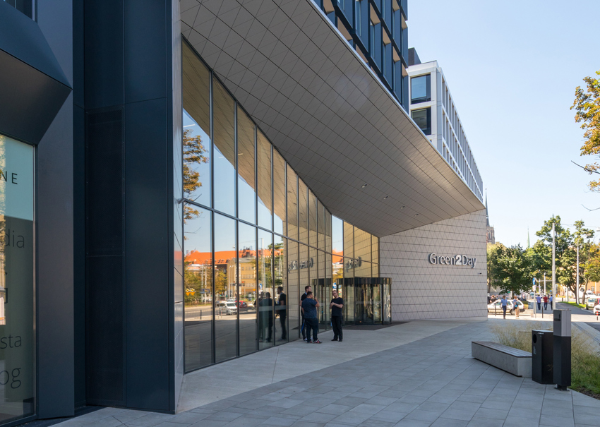 Biurowiec Green 2Day oferuje nowoczesnÄ… , funkcjonalnÄ… powierzchniÄ™ biurowÄ… powstałą zgodnie z zasadami „zielonego budownictwa” i jest certyfikowany w systemie oceny budynków zrównoważonych certyfikatem LEED na poziomie GOLD.