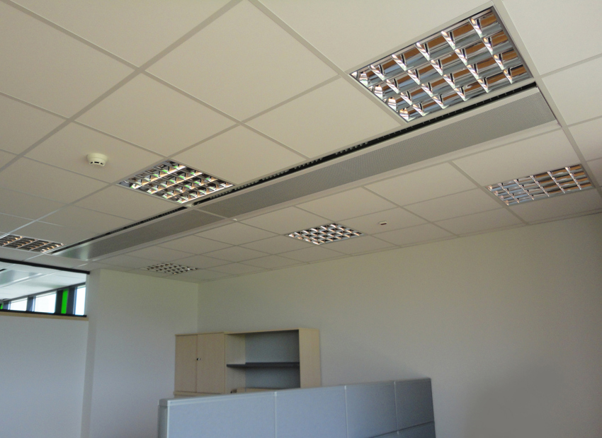 Do pracy systemów moduÅ‚ów sufitowych wykorzystana zostaÅ‚a pompa ciepÅ‚a z dolnym źródÅ‚em w postaci odwiertów pionowych.