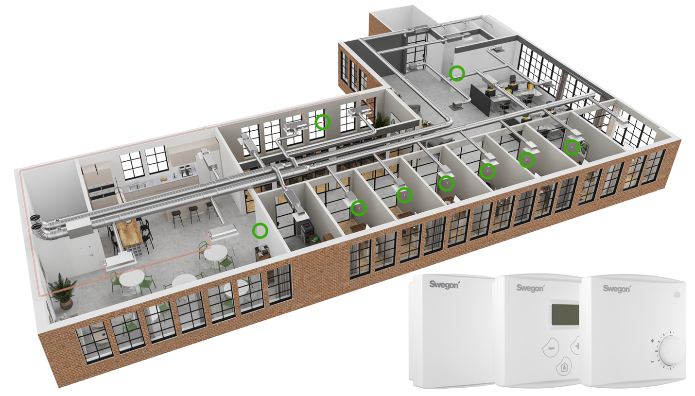 The solution is suitable for smaller projects with requirements for indoor climate control in individual rooms, as well as entire properties. The adaptable solution offers efficient installation and each room may either be fully operating as a stand-alone unit, or simply be integrated with a building management system.