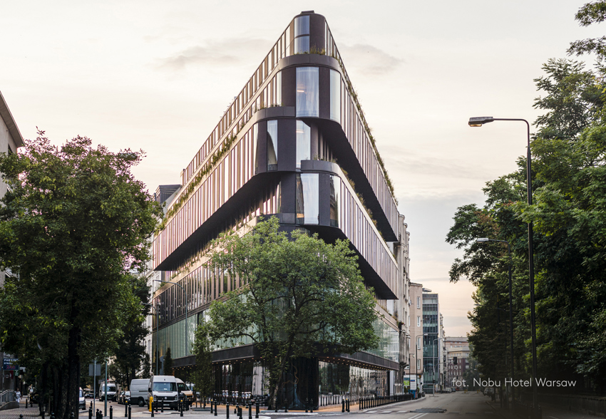 Nobu Hotel is a five-star hotel found in the very center of Warsaw, the Polish capital since the year of 1596. The hotel was built in a tenement house that survived the second world war but which was completely restored and adapted to its current use. Only a few external and internal walls, construction walls and a staircase was left of the pre-war apartment house. Since then, the foundations have been strengthened and three stories have been newly constructed. In August 2020 the hotel officially opened up to its 117 rooms, a conference floor, wellness and spa.