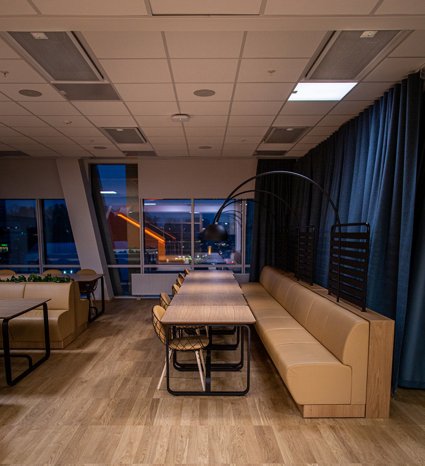 Businesses in the premises: flexible offices, restaurants, hotel and everyday amenities, as well as sports and wellness facilities, in- and outdoor greenery.