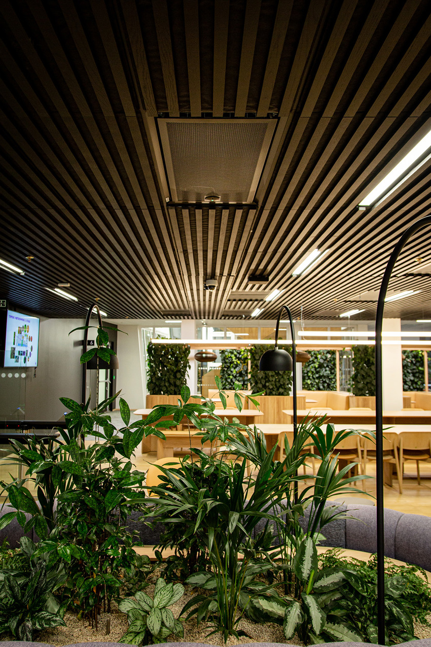 The sustainability profile of Økern Portal reaches from energy efficient heating and innovative sensor technology for energy savings, to roof top beehives and indoor biophilic design. Greenery and other natural materials indoors has a shooting effect on the human. The sense of comfort and wellbeing increase when we feel connected to nature. Bringing outside in could, especially in the Nordics, have great impact on the indoor environment, the building and its people as plants and trees increase humidity.