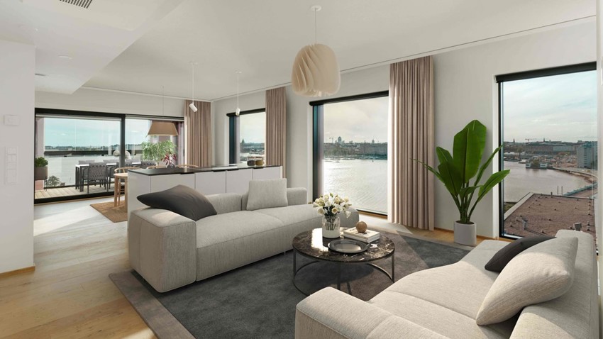 Developed by YIT, the building is constructed with Swegon indoor climate solutions in every apartment. The set-up includes CASA air handling units, CASA Tango cooker hoods integrated into the kitchen cabinets and WGI/WGO units. The latter is a Swegon patented wall-mounted product that can handle intake of fresh air and extraction of indoor air simultaneously, and without mixing the two airflows and risk bringing odours back in. See the façade image.