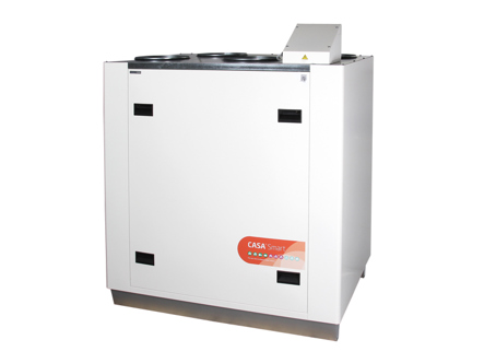 The air handling unit allows for free cooling in the summer months, as the supply air is taken from the northern shadow-covered side of the house.