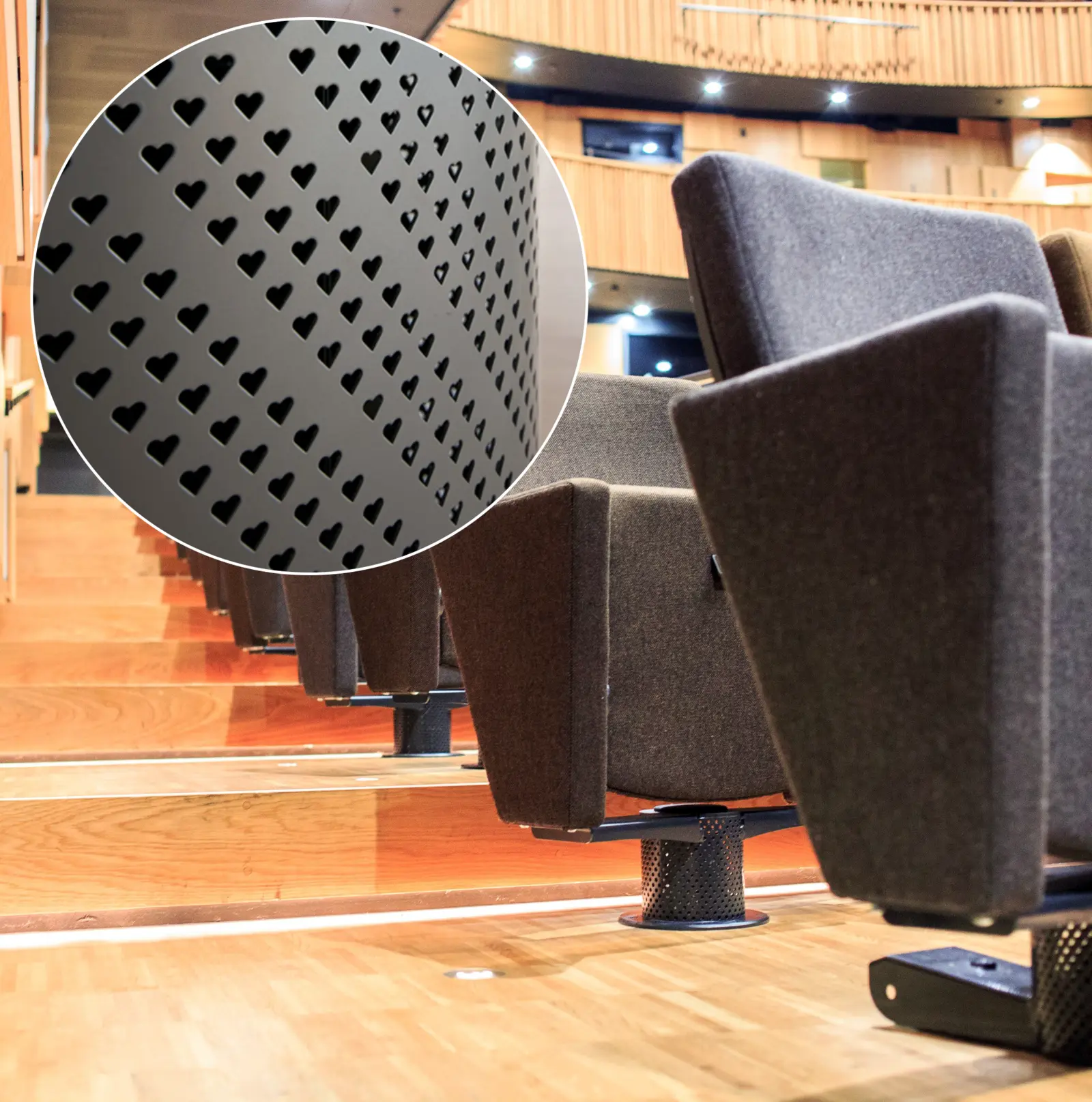 Through the ability to develop customer-specific perforations, products can be adapted to harmonize with the architecture while maintaining performance and comfort. One example is Halmstad City Library, where displacement diffusers were delivered with perforations in the shape of hearts.