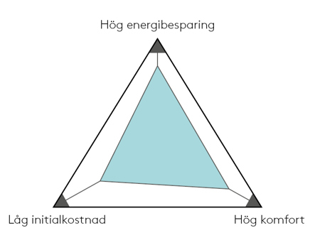 Varje projekt, oavsett om det gäller nyproduktion eller renovering, har sin specifika kravbild och det gäller att hitta den systemlösning som passar bäst till det aktuella projektet. Idealet vore givetvis ett system som är oslagbart vad gäller både energibesparing och komfort, samtidigt som det är billigast, men i praktiken måste det alltid göras en avvägning mellan dessa faktorer. Vad är viktigast i ditt projekt?