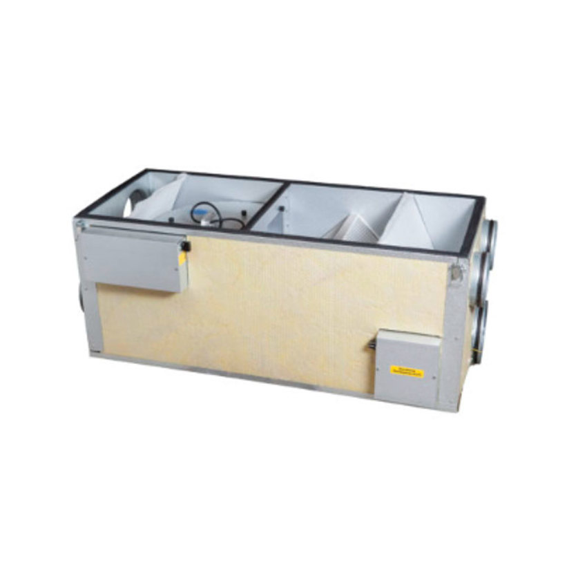 Ett FTX-aggregat med korsströmsvärmeväxlare som oftast placerades mellan köksskåpen ovanför spisen i kombination med en spiskåpa som monterades under aggregatet. Systemet var vanligt i villor och lägenheter på 1980- och