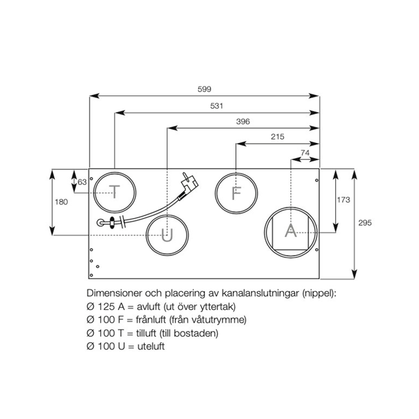 Ett FTX-aggregat med korsströmsvärmeväxlare som oftast placerades mellan köksskåpen ovanför spisen i kombination med en spiskåpa som monterades under aggregatet. Systemet var vanligt i villor och lägenheter på 1980- och