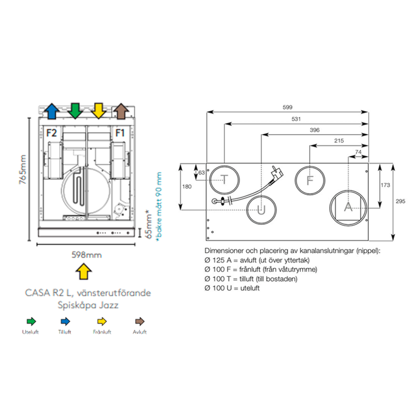 Genom att byta ut FTX-aggregatet mot ett modernt aggregat med en roterande värmeväxlare och energisparande EC-motore,r så kan du spara mer än 2000 kWh i energi per år. Samtidigt får du en betydligt bättre osuppfångningsförmåga i din spiskåpa. Aggregatet kräver ingen kondensavlopps-anslutning då en energieffektiv rotorerande värmeväxlare ej kondenserar ut fukt ur luften. CASA R2 aggregatet är dessutom måttmässigt och kanalmässigt mycket lika Essvex 55 vilket gör utbytet enkelt, snabbt och smidigt.