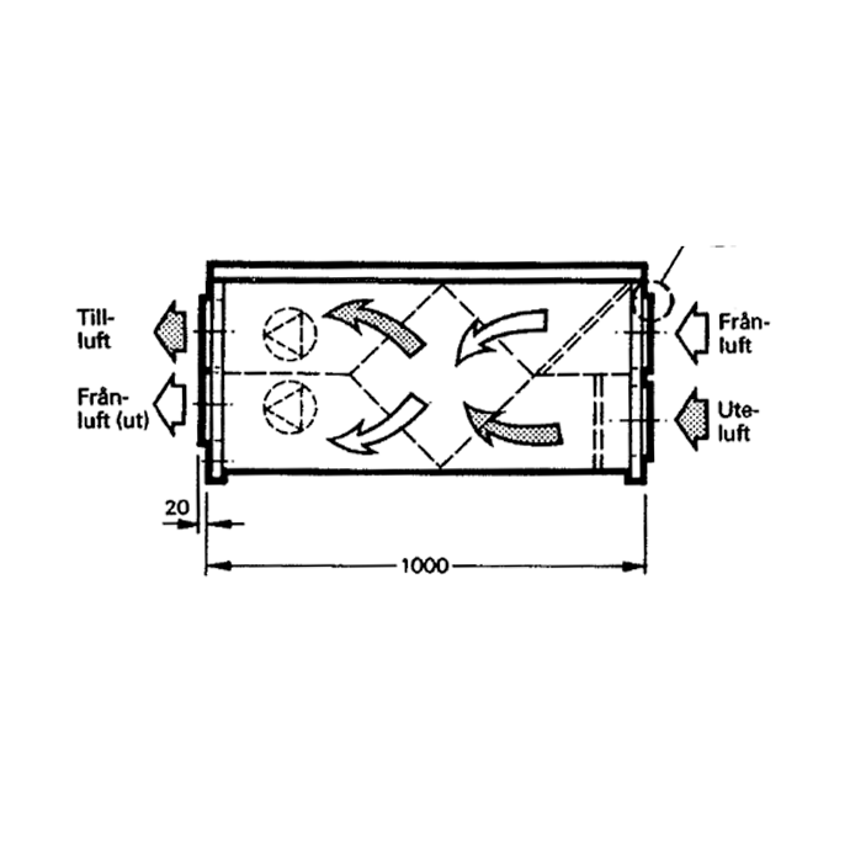 Ett FTX-aggregat med korsströmsvärmeväxlare som placerades på vinden. Systemet var vanligt i villor på 1980- och 90-talet.