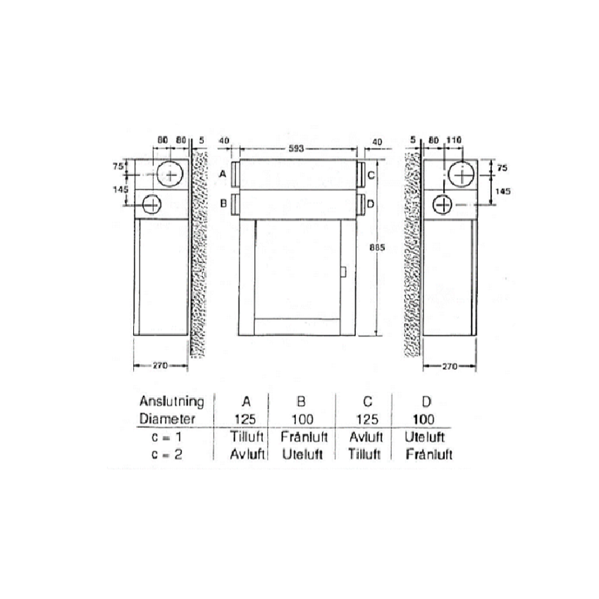 Ett FTX-aggregat med korsströmsvärmeväxlare som oftast placerades mellan köksskåpen ovanför spisen i kombination med en spiskåpa som monterades under aggregatet. Systemet var vanligt i villor och lägenheter på 1980- och