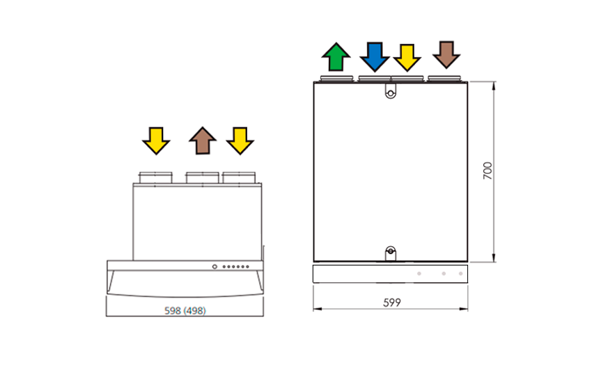 CASA R3 & Jazz spiskåpan installeras i stället för kryddhyllefläkten ovanför spisen. De gamla frånluftskanalerna kan utnyttjas och anslutas till ventilationsaggregat. Nya kanaler monteras för uteluft och tilluft.