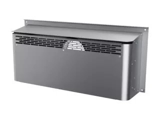 - Avluften sprids horisontellt via en slits i överkant på donets front, uteluften tas in via ett väderskyddat smådjurssäkert trådnätsgaller i donets undersida