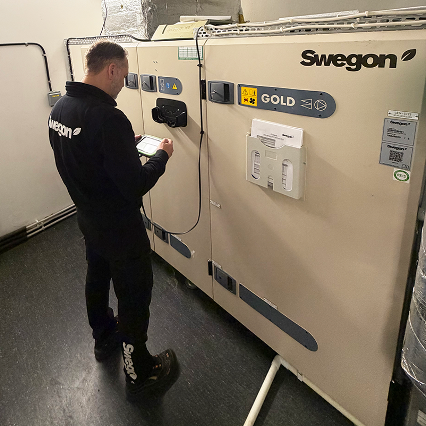 I det här projektet arbetar vi med vad vi på Swegon kallar RE:vitalise – ett hållbarhetskoncept där befintliga luftbehandlingsaggregat uppgraderas med modern funktionalitet för att förlänga deras livslängd. Genom att minimera behovet av nyproduktion, transporter och installation bidrar RE:vitalise till att kraftigt minska mängden inbäddat koldioxid i byggnader.