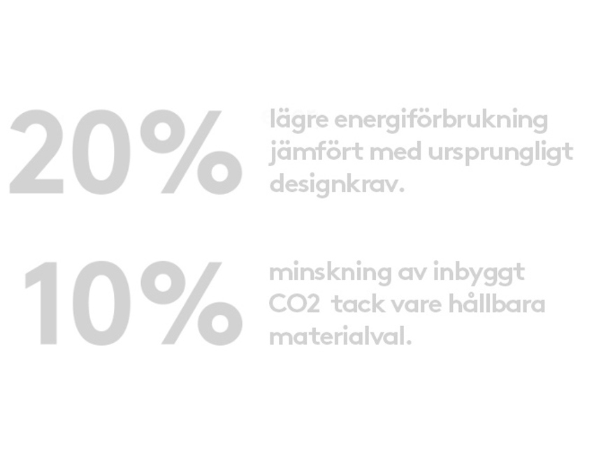 Under designfasen var målet att byggnaden skulle uppfylla de svenska kraven för Energiklass B. Men när projektet fortskred skärptes reglerna, vilket ställde ännu högre krav på lösningen för inomhusklimat och energioptimering.