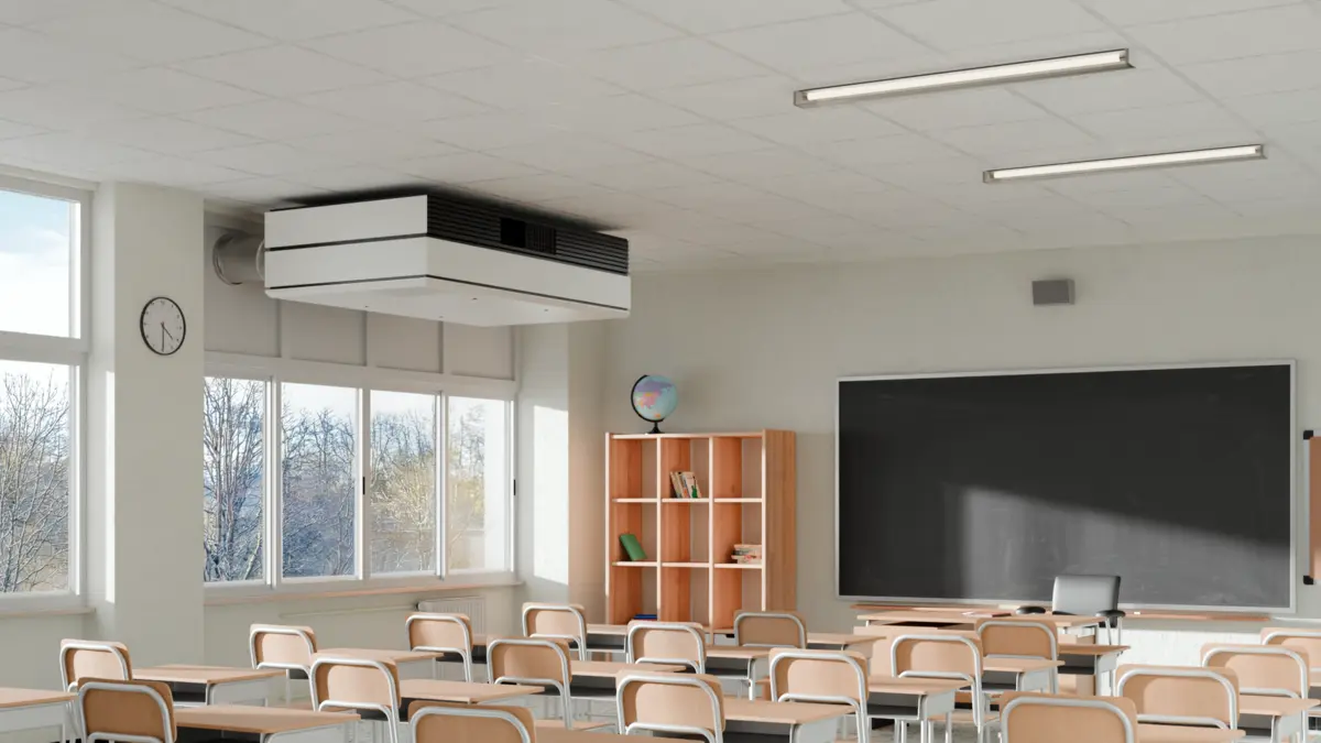 With only 35 dB(A) at 1000 m³/h, SERENITY is a promise of comfort, well‑being and acoustic serenity. The unit meets one of the greatest challenges in decentralised ventilation: combining high airflow capacity with low noise levels. SERENITY has been designed with special attention to easy installation and seamless integration into buildings. It can be configured for ceiling installation as semi-integrated, integrated or non-integrated.